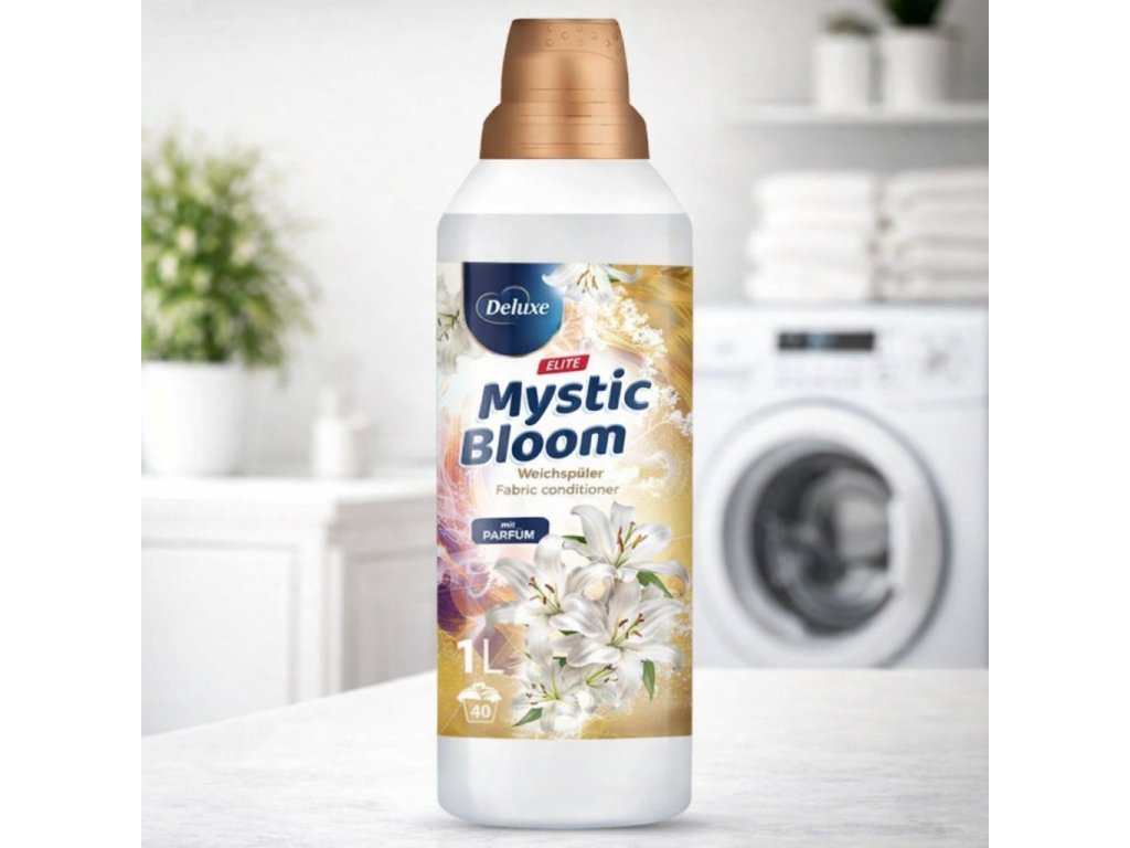 Deluxe Elite Mystic Bloom - je prémiová parfemovaná aviváž, která zjemňuje textilie, usnadňuje žehlení a zanechává prádlo příjemně vonící. Díky parfémovým složkám má vůně delší výdrž a postupně se uvolňuje i po uschnutí. Je vhodná pro běžné oblečení, povlečení, ručníky i jemné prádlo. Obsah 1 L vystačí až na 40 pracích cyklů, což z ní činí ideální volbu pro domácnosti, které hledají kombinaci kvality a dlouhotrvající vůně.