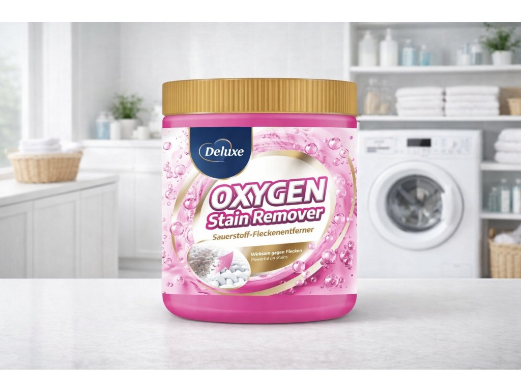 Deluxe Oxygen Stain Remover je účinný kyslíkový odstraňovač skvrn, který z prádla pomáhá odstranit nejčastější skvrny od kávy, čaje, vína, ovoce, trávy či kosmetiky. Díky aktivnímu kyslíku je šetrnější k vláknům než běžné chlorové prostředky a lze jej používat na bílé i barevné textilie (při dodržení pokynů). Lze použít samostatně při namáčení, nebo jako přísadu k pracímu prášku či gelu. Balení 600 g vystačí až na cca 20–25 použití dle dávkování.
