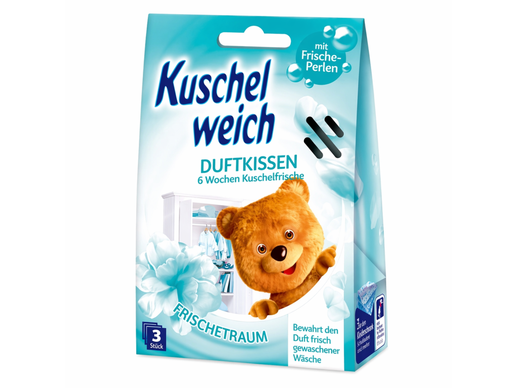 Kuschelweich Frische Traum jsou vonné sáčky, které dodají vašemu prádlu i šatníku dlouhotrvající svěžest. Pokud oblečení leží delší dobu ve skříni, může ztratit vůni – právě tyto sáčky ji znovu oživí.