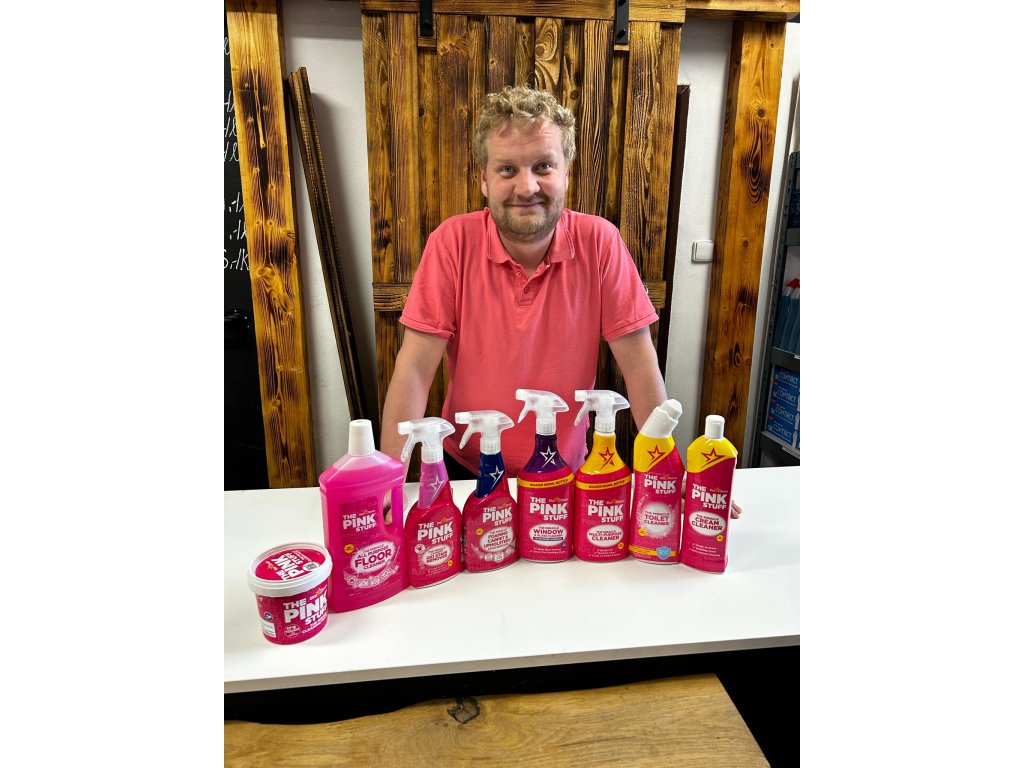 2. The Pink Stuff Cream Cleaner 500ml - zázračný čišticí růžový krém The Pink Stuff - zázračný čistící krém - 500ml. Tento čistící krém je unikátním produktem, jelikož s ním můžete, i přesto, že je lehce abrazivní, čistit všechny povrchy a nemusíte se obávat poškrábání! Skvěle čistí sklokeramické a varné desky, obklady, dlažbu, grily, trouby, sklo a dokonce i plastový zahraní nábytek! S tímto krémem určitě neprohloubíte i na použití v dílně či garáži, jelikož je velmi dobrým pomocníkem při čištění plastů na autech, zahradní technice apod.... Univerzální krémový čistič The pink stuff účinně odstraní skvrny, nečistoty a mastnotu z tvrdých povrchů a to vše na přírodní bázi. Použití: Protřepejte. Aplikujte krém na vlhký měkký hadřík či houbičku, otřete povrch a opláchněte jej čistou vodou, poté povrch otřete ještě suchým hadříkem. 3. The Pink Stuff čistič podlah 1L - zázračný universální prostředek na podlahy Detailní popis produktuThe Pink Stuff - zázračný univerzální přípravek na mytí podlahových povrchů - 1l The pink stuff je anglický výrobek z řady zázračných čističů! Jedná se o univerzální mycí a čisticí přípravek na podlahy a povrchy. Tento univerzální "multi purpose" přípravek je ideální použít v roztoku s vodou a to například pro vytírání nebo otírání a čištění povrchů, podlah a dalších ploch, které jsou voděodolné. Přípravek Vám zajistí skvělou vůní a výborný mycí a čisticí účinek.