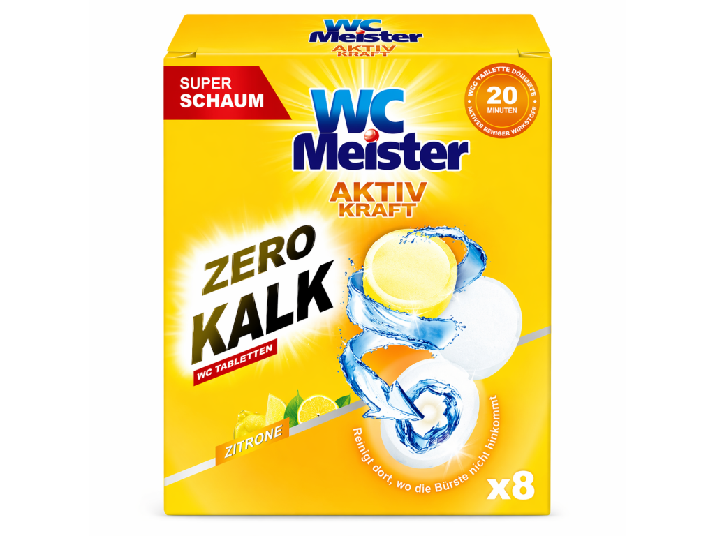 WC Meister Aktiv Kraft WC tablety Citron jsou praktickým řešením pro hloubkové čištění toalety bez námahy. Po vhození do mísy se tableta aktivuje a vytvoří čisticí pěnu, která účinně odstraňuje vodní kámen, usazeniny i nečistoty.